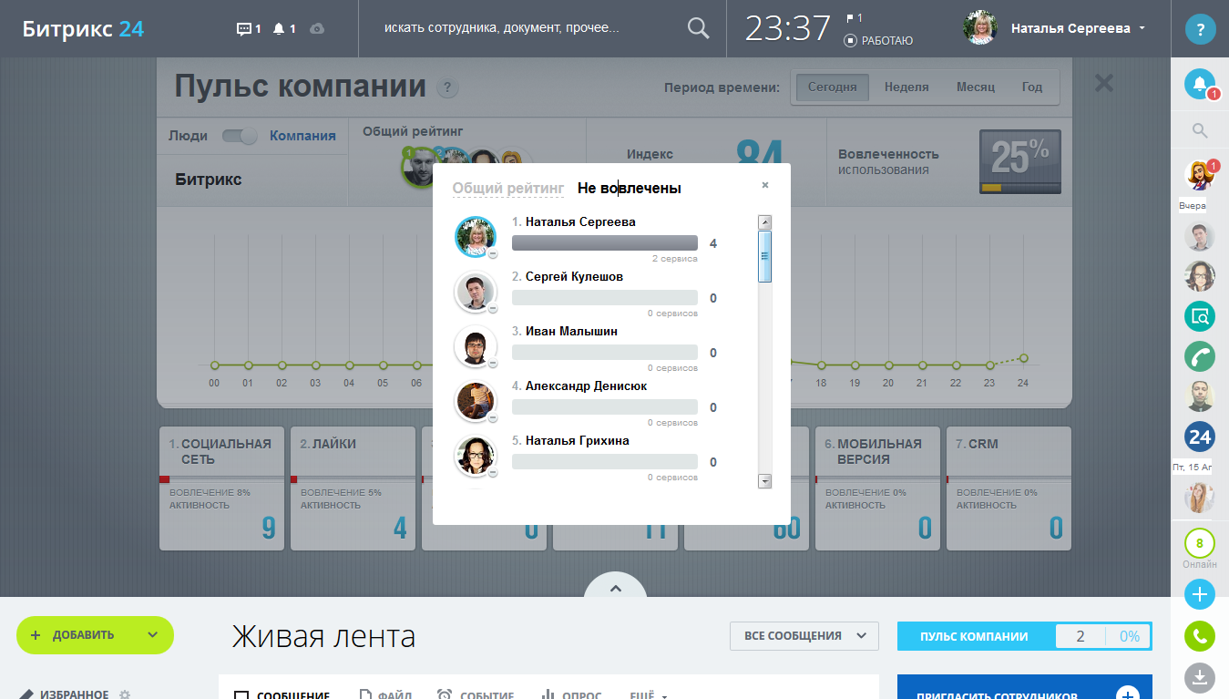 Установите мобильное приложение (iOS, Android), - и сможете работать с порталом со смартфона: читать «Живую ленту»; управлять документами, задачами и файлами; просматривать, отправлять, комментировать и «лайкать» сообщения. Push-уведомления позволяют быть в курсе событий в компании и всегда оставаться на связи с коллегами. Возможности