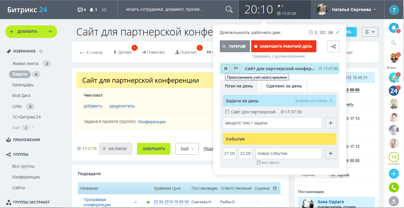 Задачи 2.0 - система управления задачами и проектами с отчетами по эффективности работы каждого сотрудника, каждого отдела и всей организации. Зачастую компании испытывают сложность в том, чтобы замотивировать сотрудника работать с задачами на портале и полноценно использовать этот инструмент. «Задачи 2.0» активно задействуют самоорганизацию: сотрудник может самостоятельно ставить себе задачи и принимать их от руководителя.
