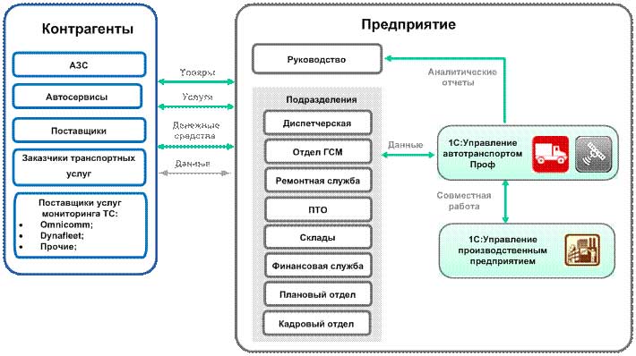 Программный продукт "1С:Предприятие 8. Управление автотранспортом Проф" предоставляет следующие возможности: