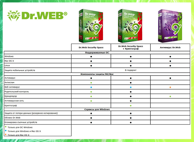 Антивирус Dr.Web – программа обеспечивающая минимальный уровень защиты системы пользователя от различного рода интернет угроз и поддержкой Windows, Mac OS X и Linux